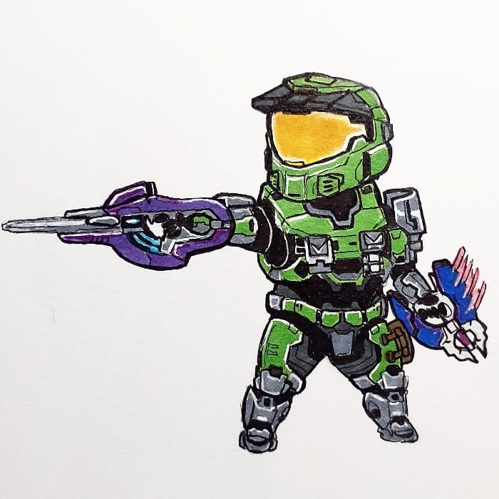 “The Halo 2 Anniversary Carbine and the Halo Infinite Needler both look really awesome and fortunately, I’ve been commissioned recently to draw both! The spartan was a blast to draw, but the chest armor always is a challenge!”